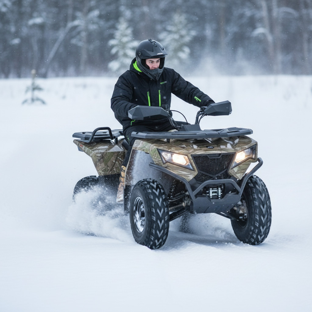 Čtyřkolka je vybavena automatickou převodovkou s variátorem, což usnadňuje ovládání a zajišťuje plynulý přenos výkonu na kola. Automatické převodovky jsou ideální pro uživatele, kteří preferují jednoduchost a pohodlí při jízdě v různorodém terénu.
