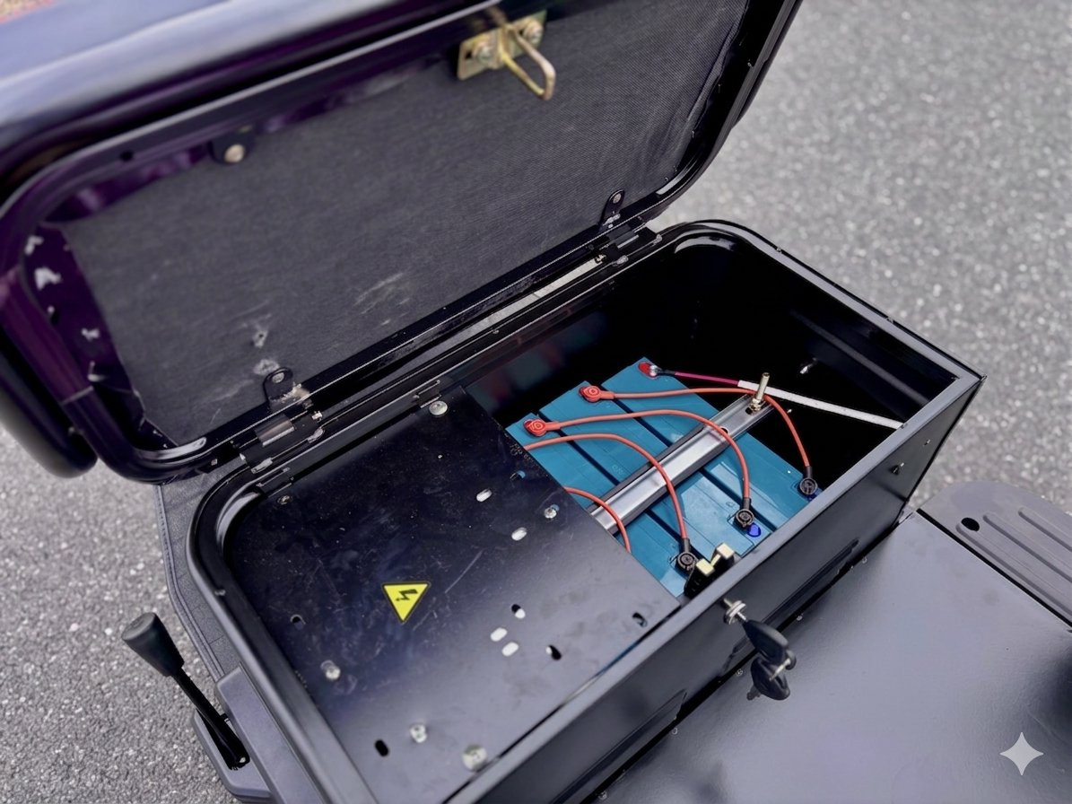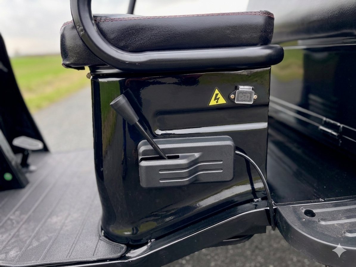 Baterie této tříkolky se nabíjí pomocí standardní elektrické zásuvky, což zajišťuje pohodlné nabíjení doma nebo v práci. Doba nabíjení je přibližně 6-8 hodin, což je vhodné pro noční nabíjení. Efektivní nabíjení je důležité pro minimalizaci prostojů a maximalizaci využití vozidla.