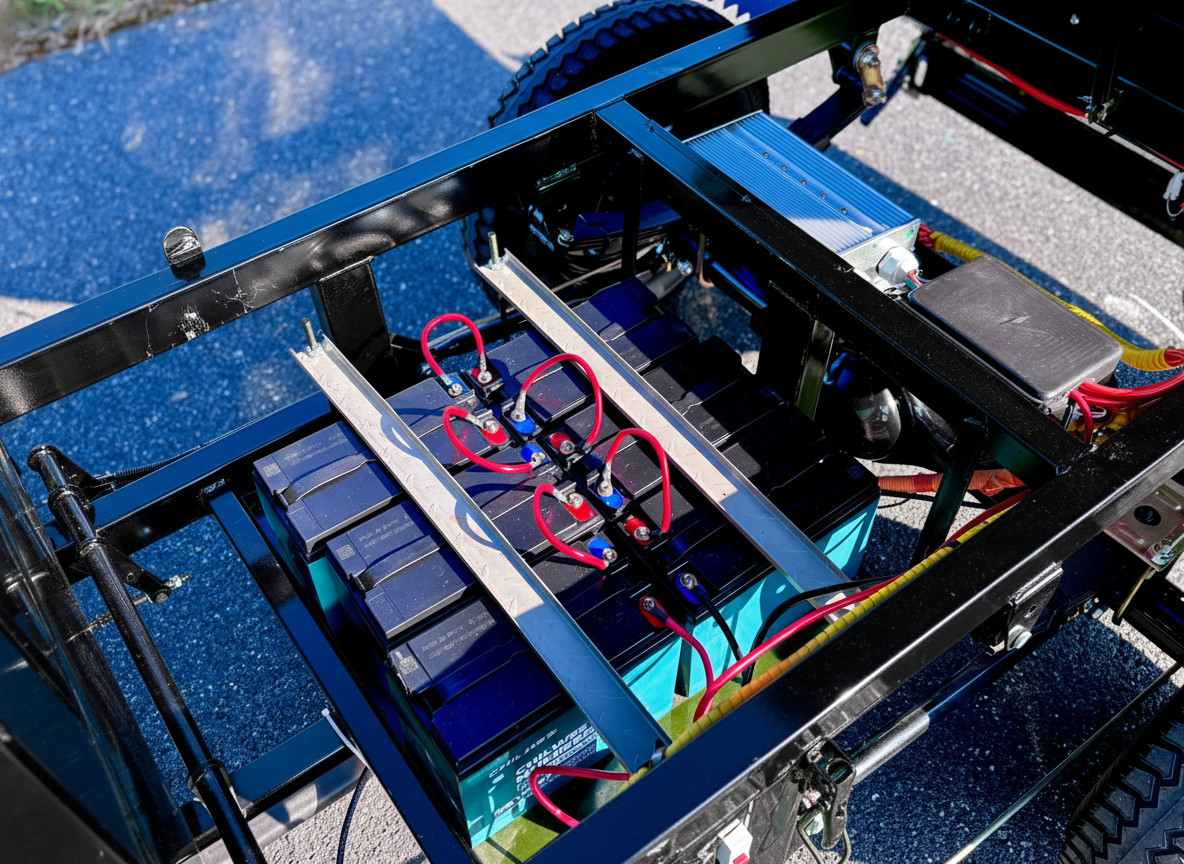 Tříkolka je vybavena gelovou trakční baterií, která umožňuje rychlé a efektivní nabíjení. Plné nabití baterie trvá přibližně 6-8 hodin při použití standardní nabíječky. Nabíjení lze provádět z běžné elektrické zásuvky, což zajišťuje pohodlné doplňování energie.