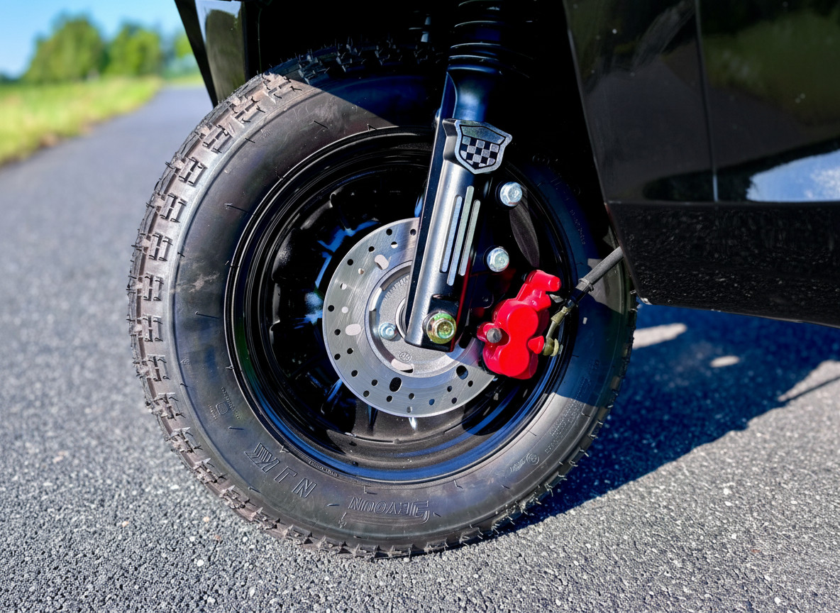 Pro zajištění bezpečnosti je tříkolka vybavena kotoučovou brzdou vpředu a bubnovou na zadních kolech, což zajišťuje efektivní brzdění i při plném zatížení. Dále je vybavena LED osvětlením pro lepší viditelnost a bezpečnost při jízdě za snížené viditelnosti.