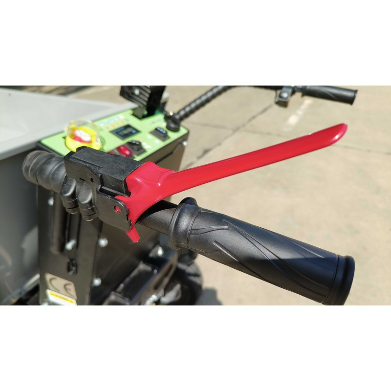 Elektrický sklápěč LR50E je navržen pro spolehlivý převoz nákladu až do 500 kg. Srdcem stroje je výkonný bezkartáčový motor, který zaručuje plynulý rozjezd, vysoký točivý moment a dlouhou životnost. Bezpečnost zajišťuje elektromagnetická brzda, která kola automaticky zablokuje po uvolnění ovladače pojezdu. Díky hydraulickému sklápění korby vyprázdníte náklad rychle, pohodlně a bez fyzické námahy.